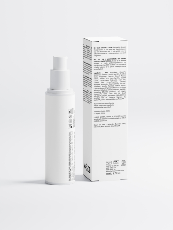Aqua/Water, Glycerin➁, Simmondsia Chinensis (Jojoba) Seed Oil➀, Pentylene Glycol, Polyglyceryl-3 Stearate, Cetearyl Alcohol, Betaine, Sodium PCA, Coco-Caprylate, Isoamyl Laurate, Caprylic/Capric Triglyceride, Kojic Acid, Xanthan Gum, Parfum/Fragrance, Cellulose, Hippophae Rhamnoides (Sea Buckthorn) Fruit Oil➀, Tocopherol, Ascorbyl Palmitate, Sodium Phytate, Capsicum Annuum (Paprika) Fruit Extract➀, Potassium Hydroxide, Helianthus Annuus (Sunflower) Seed Oil➀, Rosmarinus Officinalis (Rosemary) Leaf Extract*, Limonene➂, Citrus Limon Peel Oil, Benzyl Salicylate➂, Citral➂, Pogostemon Cablin Oil, Citrus Aurantium Peel Oil, Juniperus Virginiana Oil, Linalool➂, Cedrus Atlantica Oil/Extract, Pinene➂